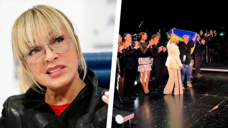 На сцену хореографиня вийшла із величезним прапором України. Відповідне відео Вайкуле розмістила на особистій сторінці в Instagram.