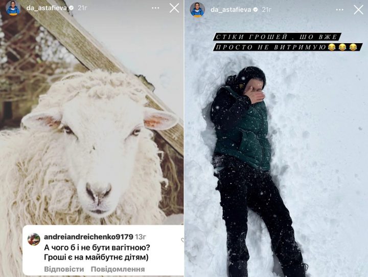 Так, один із підписників прямо запитав у коментарях під публікацією в Instagram: «Ти вагітна?» Інші інтернет-користувачі заявили, що їм теж так здалося, хоча знайшлися й ті, хто виправдав «вагітний» силует Астаф’євої.