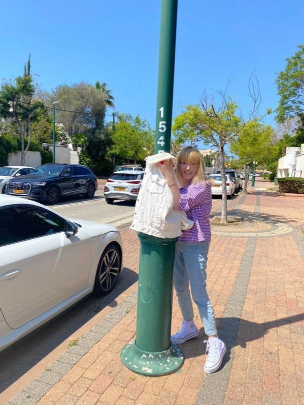 Також до нього Пугачова додала символічне фото, де вона позує біля стовпа посеред вулиці в Ізраїлі та усміхається на камеру.