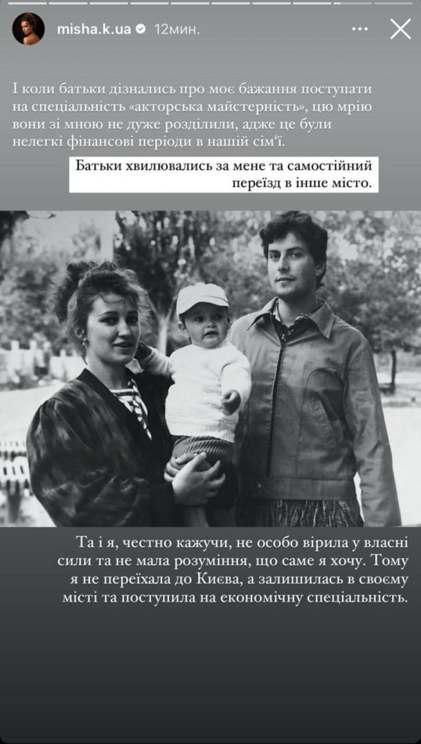 Студентські роки далися Мішиній тяжко. Тоді знаменитість ходила на різні вечірки, вживала алкоголь, палила цигарки та не відчувала особистісного розвитку. Так тривало доти, поки в артистки не почалися панічні атаки.