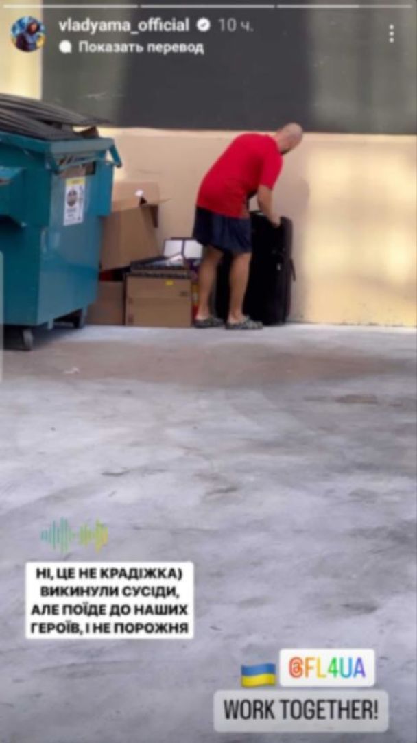 Як повідомив в описі під відео Яма, він знайшов цю валізу на смітнику у своїх сусідів і вже визначив її долю – танцівник заявив, що це буде допомога для українських бійців: