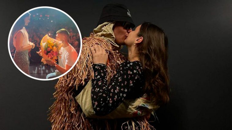 Один з учасників гурту Kalush Orchestra, сопілкар і бітбоксер Віталій Дужик освідчився своїй дівчині Євгенії просто на сцені.