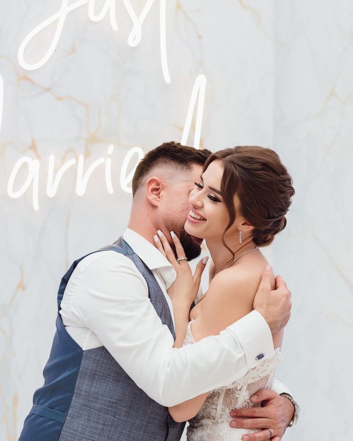 Також візажистка показала їхні романтичні кадри з весілля, якими вони раніше не ділилися. На фото новоспечене подружжя усміхалося одне одному і дарувало теплі поцілунки та обійми.