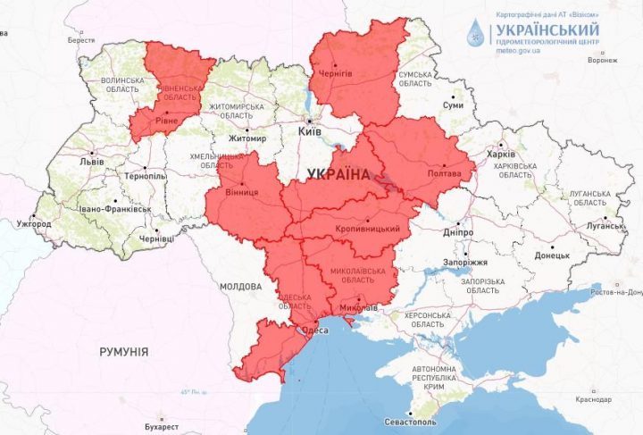 За даними синоптиків, несприятливі погодні умови очікуються у більшості центральних областей, а також місцями у північній та південних частинах.