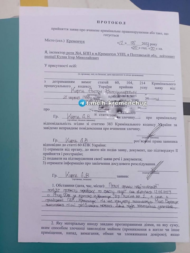 В ході виступу він виконав пісню «Берега» російською мовою. Це не сподобалося глядачам, тому вони викликали поліцію і написали на нього заяву.