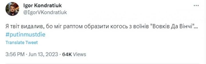 Пізніше Кондратюк видалив свій пост.