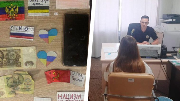 Під час обшуку вдома у 14-річної дівчини вилучила малюнки з прапором РФ, радянською символікою, лозунгами на підтримку Царської Росії.