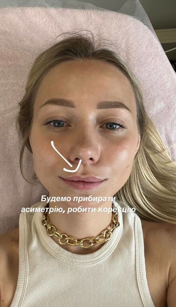 Як поділилася блогерка, їй подобається її профіль зараз, однак за допомогою процедури вона хоче виправити асиметрію губ та відкоригувати їхню форму.