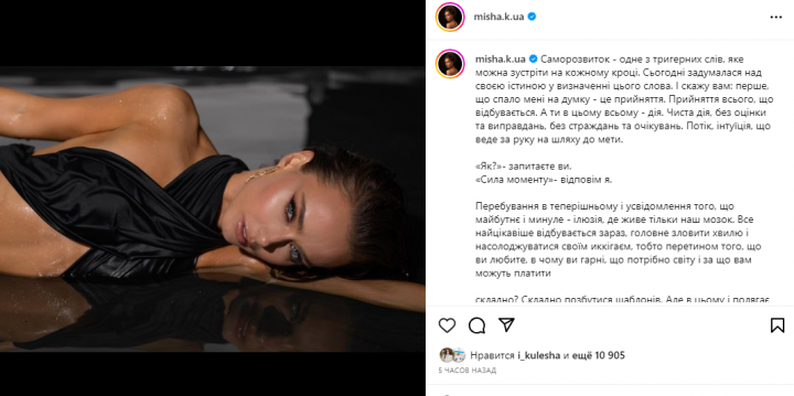 Цікаво й те, що Мішина позувала у воді, що додало її образу ще більшої сексуальності. Користувачі мережі прийшли в захват від її нової фотосесії і закидали актрису компліментами: