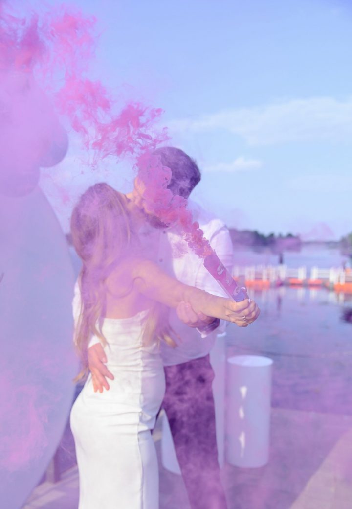 Знаменитість влаштувала гендер-паті, аби дізнатися, хто ж у них з чоловіком народиться – хлопчик чи дівчинка. Гості теж намагалися здогадатися та голосували. Врешті, коли друзі пари запалили кольоровий дим, стало відомо, що закохані стануть батьками дівчинки.