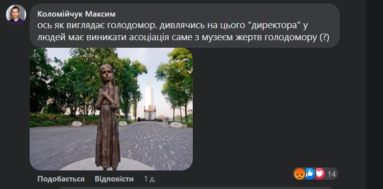 «Можете називати це бодішеймінгом, фетшеймінгом та лукізмом, але я вважаю, що Музей Голодомору-геноциду має очолити військовий, який пройшов російський полон і знає реально, що таке голод, тому він може зрозуміти всю суть музею про Голодомор, а не пані Леся Гасиджак«.