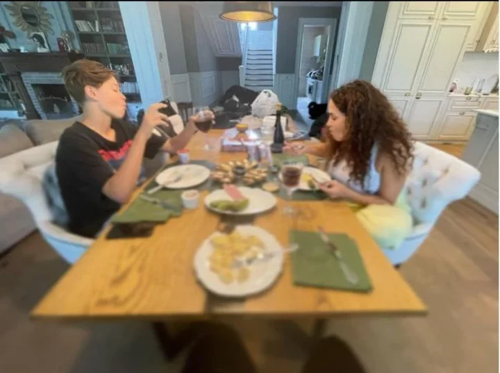 Разом вони проводили час у будинку репера. На фото Каменських та син Потапа сидять за обіднім столом. Разом усі вони снідали.