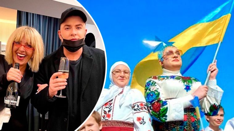 На сцену артист вийшов у вишиванці і з зіркою на голові, а його «мама» Інна Білоконь блищала в українському вбранні. Шоу-балет запалив разом з ними на сцені під розривний хіт, в приспіві якого є слова «Раша, гудбай».