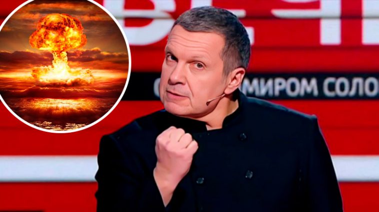 Так, в ефірі федерального каналу, кремлівський рупор Володимир Соловйов визнав, що тепер у РФ не залишається виходу, окрім як використати єдиний свій козир, яким вони постійно залякують світ – застосувати ядерну зброю. Цинізм ситуації у тому, що в студії перебував колишній депутат Верховної Ради від «Партії регіонів» Ігор Марков, який підтримав цю ідею, заявивши, що Росії «недостатньо вигравати по очкам», а пора «вдарити навідмаш, нокаутувати Україну».