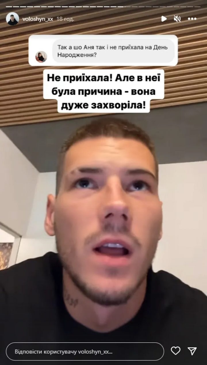 «Трішки все пішло не за планом. Зранку мене привітали батьки, а потім я побачив повідомлення від Ані, що її не буде», – зізнався Волошин у своєму блогові.