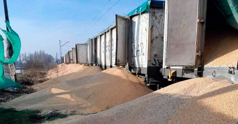 Вночі з 24 на 25 лютого на станції Котомеж була розсипана українська агропродукція з восьми напіввагонів – пошкоджено 160 тонн українського зерна