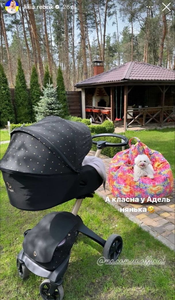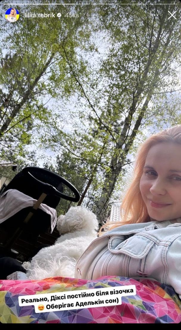 Зірка вже встигла відновити сили після пологів та повернулася на роботу аби далі тішити своїх шанувальників в ефірі. А минулі вихідні, сім’я провела разом, відпочиваючи у своєму заміському будинку, що під Києвом. В Інстаграм-сторіс актриса поділилася відповідними світлинами, на яких помітно, що новонароджена Адель спала у візочку, а поряд із нею був собачка, якого звуть Діксі. Ребрик пожартувала, що це нянька її крихітної доньки, адже він майже не відходить від дитини.