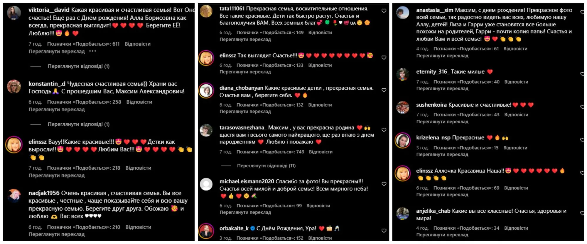 - “Яка гарна і щаслива сім’я! Ось воно – щастя! Ще раз із днем народження! Алла Борисівна, як завжди, має прекрасний вигляд!”