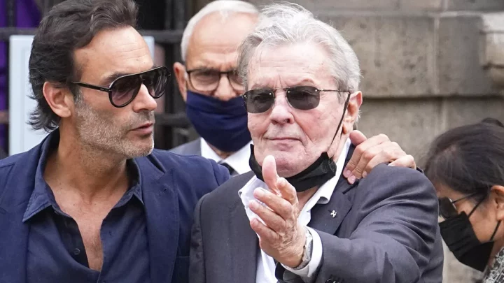 Ален Делон із сином на похороні Жана-Поля Бельмондо