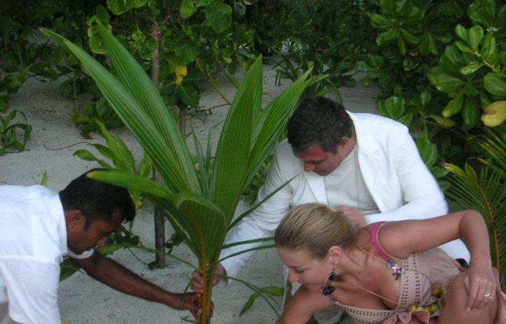 За традиціями островитян закохані посадили дерево та встановили табличку зі своїми іменами і датою церемонії.