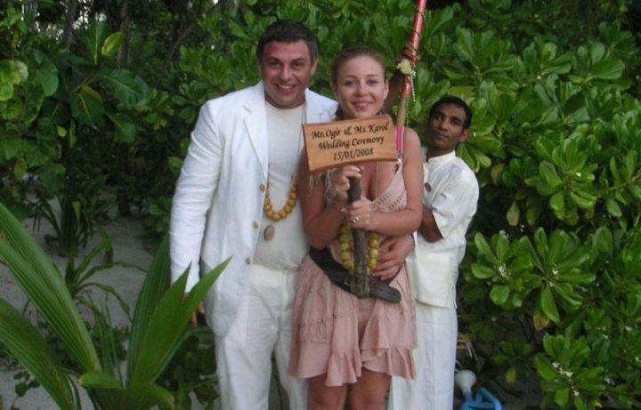 А перед цим Євген втілив мрію Тіни — вони відзначили свою спілку медовим місяцем на Мальдівах. Церемонія пройшла за місцевими традиціями — наречена була у коротенькому рожевому сарафані та босоніжках на платформі, а наречений — у легкому білому костюмі про звичайні шльопанці на босу ногу.