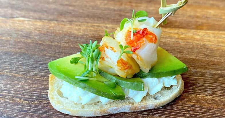 Роблю все так само, як для 1 бутерброда, тільки додаю скибочки авокадо. Щоб авокадо не темніло, збризгую його соком лимона. Або змащую ніж часточкою лимона і нарізаю авокадо.