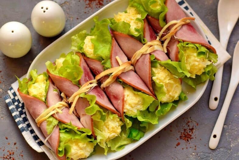 Рецепт оригінальної закуски, що ідеально підійде для святкового столу. Також таку закуску можна готувати під час фуршетних заходів. З кружечків шинки формуються трубочки з начинкою із сирної суміші. Трубочки згортаються дуже красиво та ефектно, виходять ситними та смачними, готуються буквально за 10 хвилин.