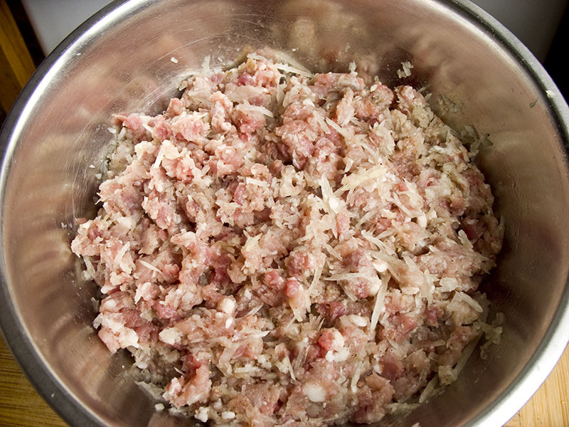2. Додати свинину, спеції і дуже добре перемішати. З отриманого складу руками формуємо фрикадельки.
