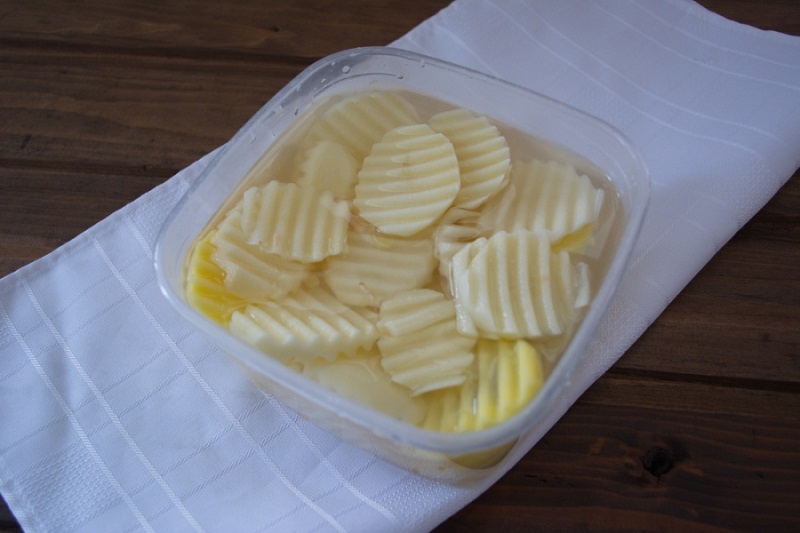 3. Спеціальним ножем наріжте картоплю кружальцями.