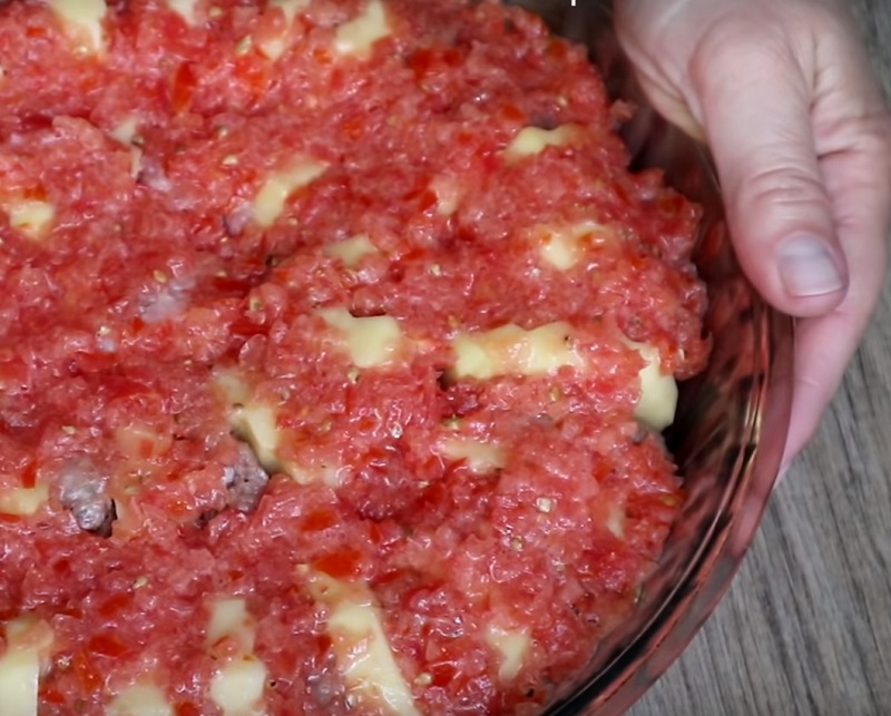 5. Додайте нарізані помідори і нарешті додайте тертий сир.