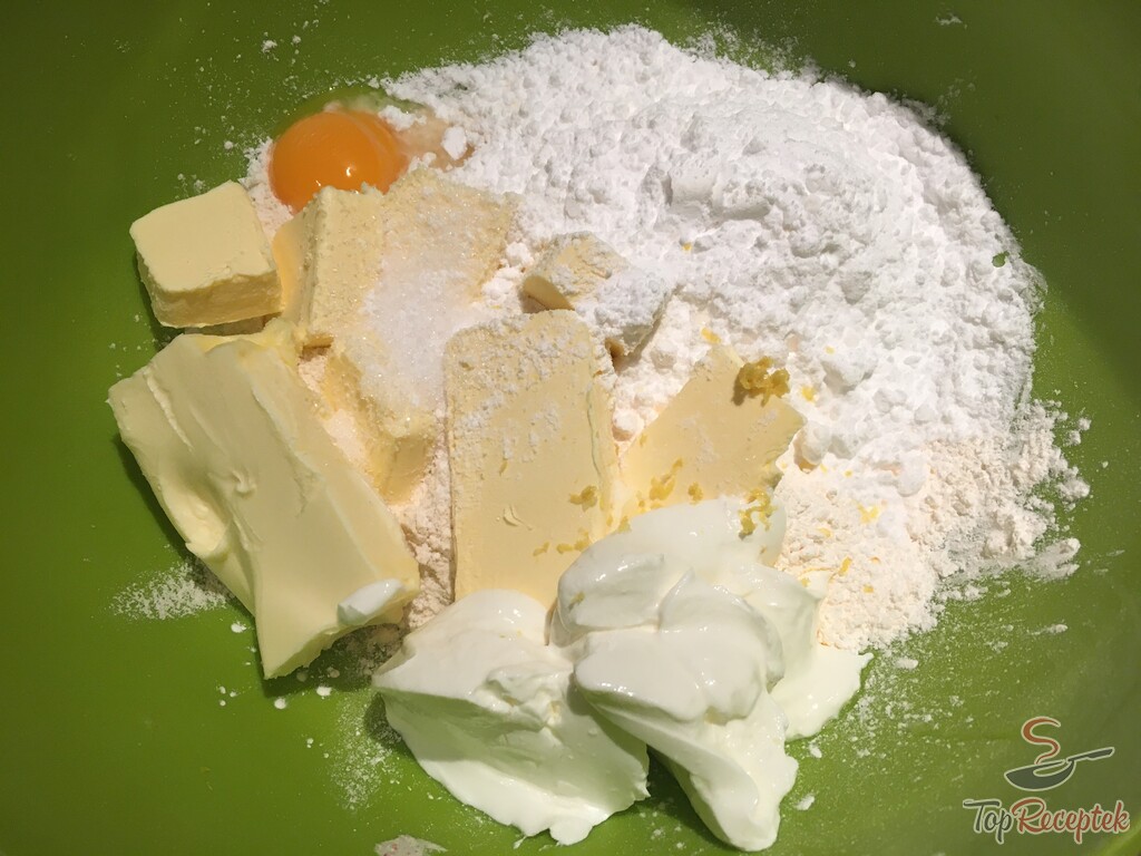 Змішуємо всі необхідні для тіста інгредієнти в мисці. Однорідне тісто загортаємо в харчову плівку і відправляємо в холодильник на 1 годину.