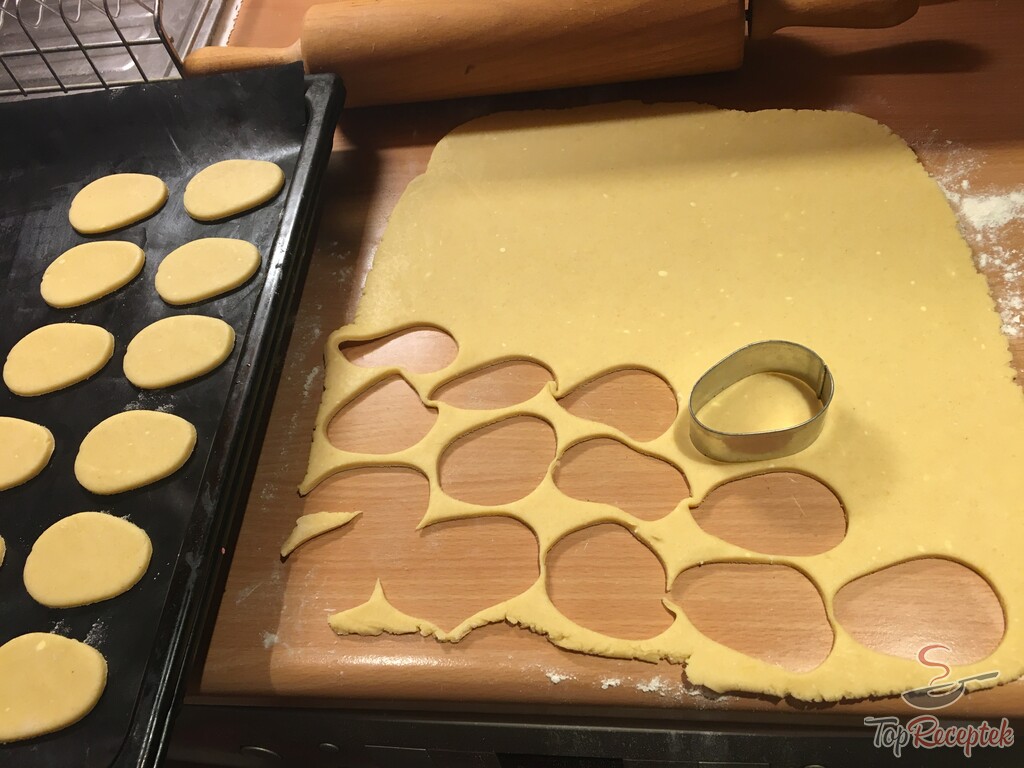Через годину розкачайте тісто і виріжте печиво потрібної форми. Ми перекладаємо їх на деко, застелене папером для випікання, і запікаємо в розігрітій духовці при 180 градусах Цельсія приблизно 6 хвилин.