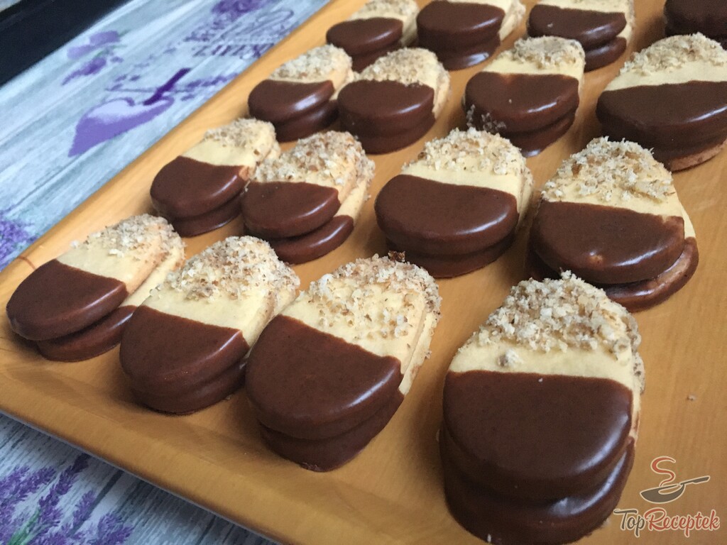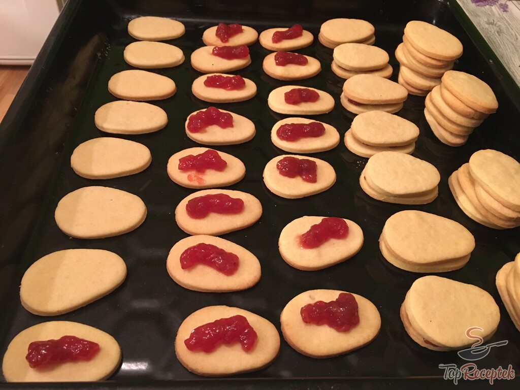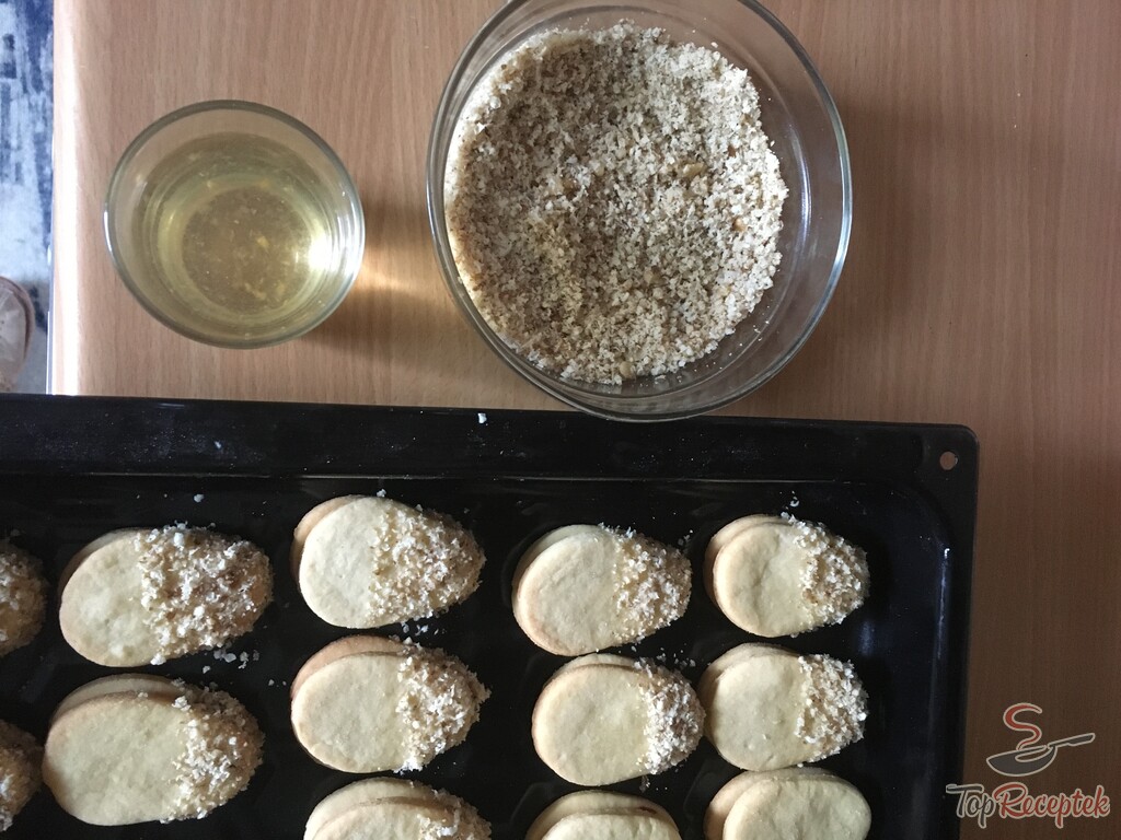 З іншого боку печиво злегка змастіть варенням або сиропом з компоту і посипте меленими волоськими горіхами.