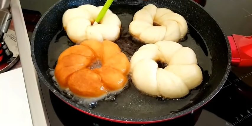 Смажте пончики на розігрітій масляній бані на середньому вогні, поки вони добре не підрум’яняться з обох сторін. Перекладіть їх на тарілку, застелену паперовими рушниками, щоб прибрати зайву олію.
