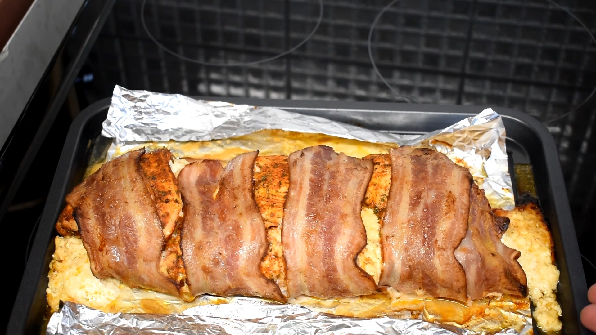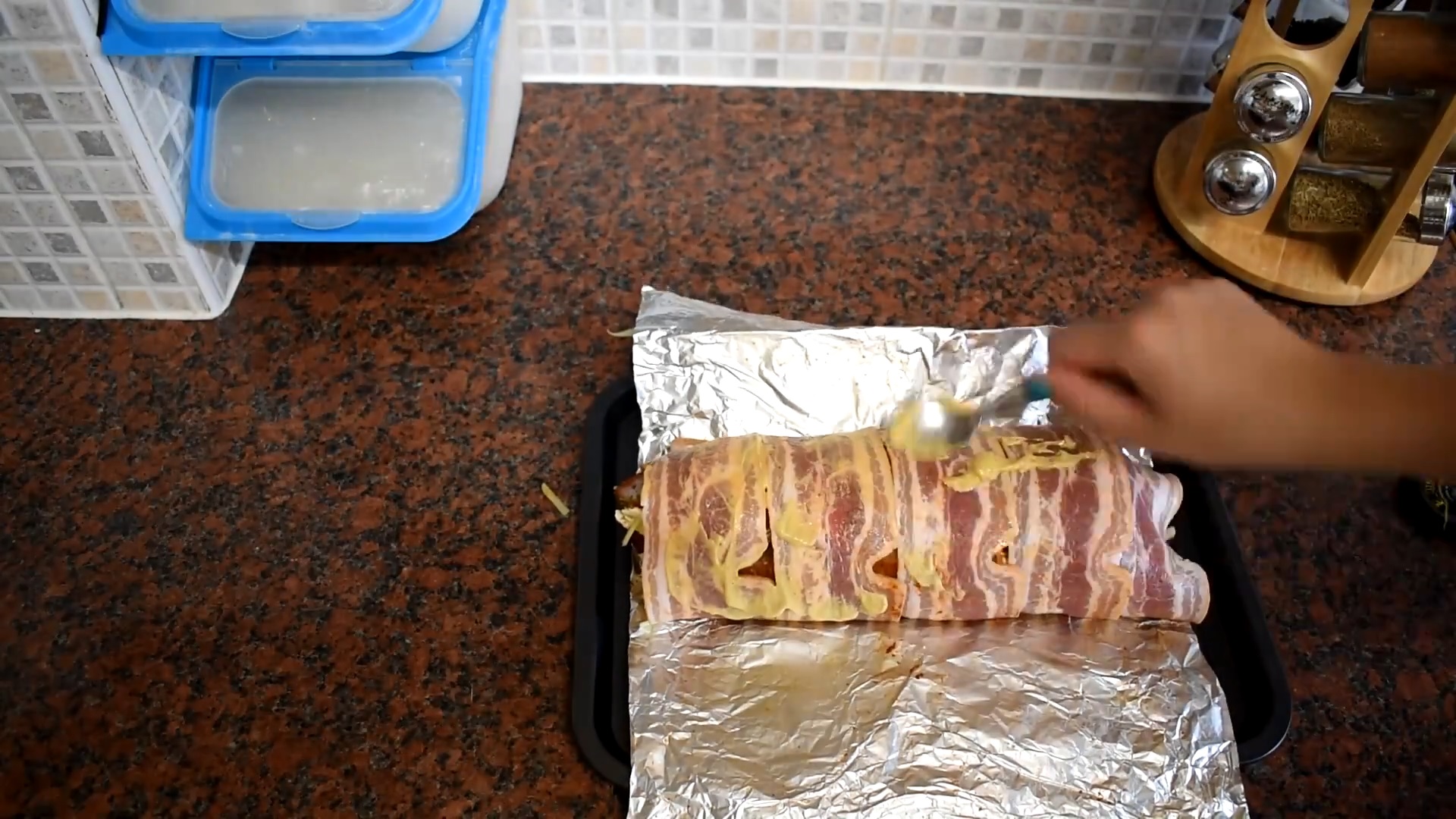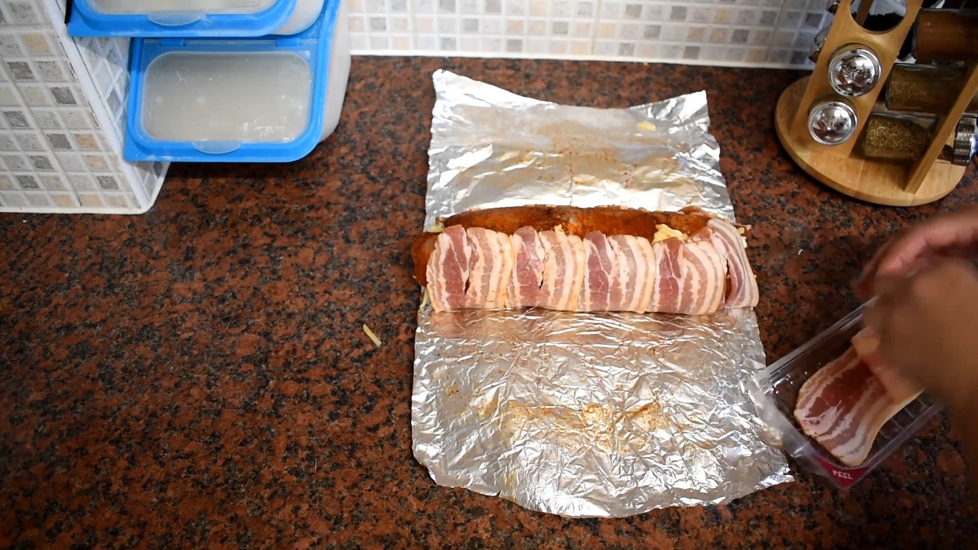 Знову розгортаємо, допомагаючи собі алюмінієвою фольгою. Якщо необхідно, ми можемо заповнити порожні місця кількома скибочками бекону.