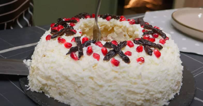 Прикрашаю порізаним чорносливом соломкою та зернами гранату. Смачного!