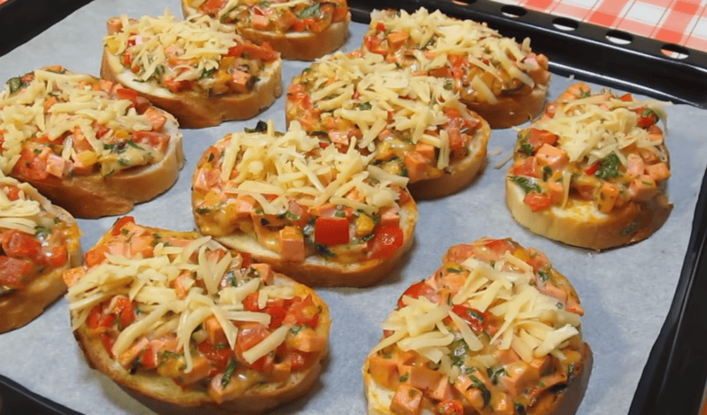 Потім дістаємо бутерброди, посипаємо сиром і кладемо ще на 2 хвилини в духовку