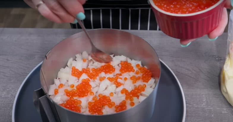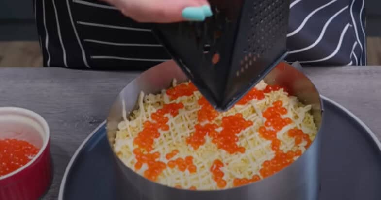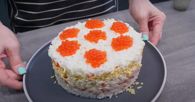 Останній шар терті білки і прикрашаю ікрою. Смачного!