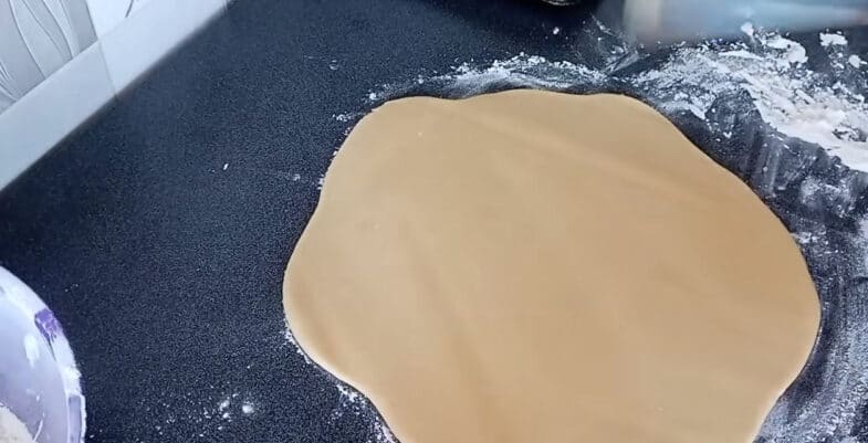 Тісто я розділила на дві частини і тепер буду формувати печиво. Розкочую тісто, товщиною приблизно 0,8 см.