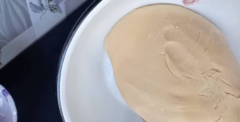 Тепер починаю поступово вводити просіяну муку, замішую тісто. Ось таке тісто у мене вийшло (у вас може піти трохи більше муки, зазвичай по рецепту йде 800 г, але це залежить від фірми, цього разу у мене пішло майже 900 г).