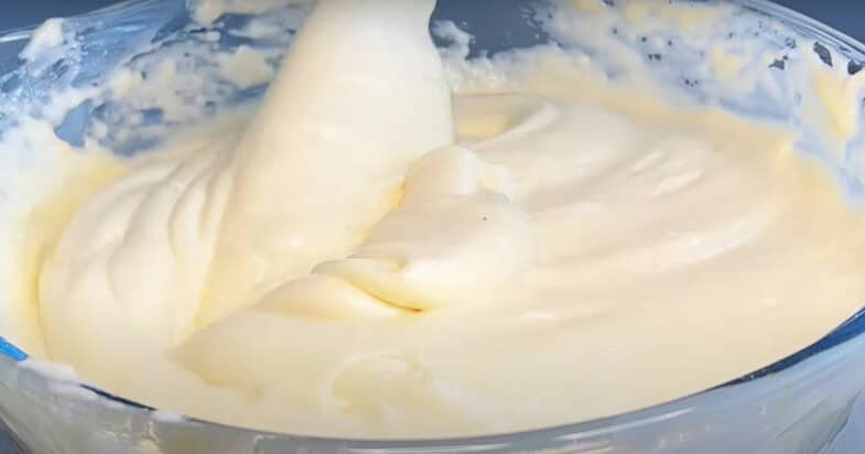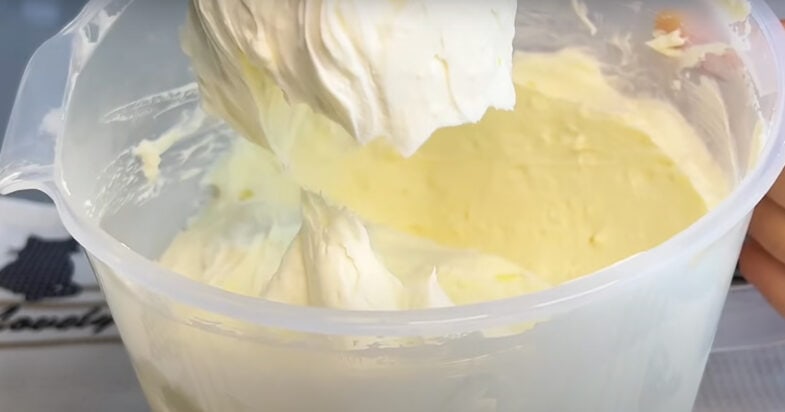 Збиваю у мисці міксером вершки, цукор і вершковий сир до пишності.