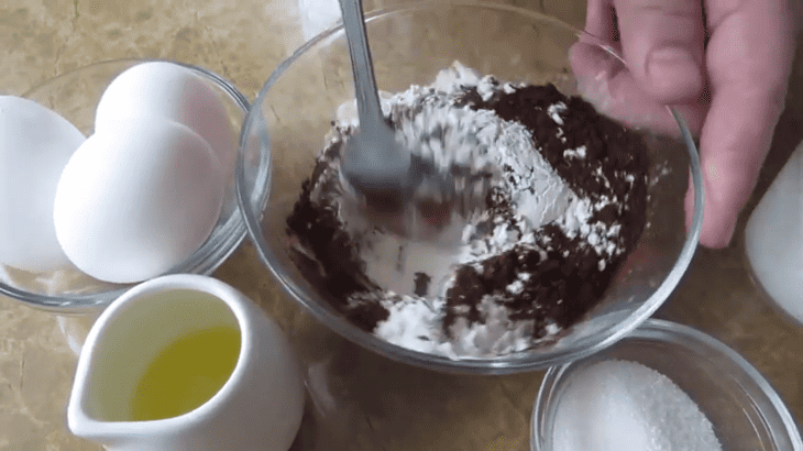 Борошно змішаємо з какао, беріть хороший какао, тоді колір млинців буде насичений.