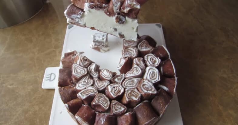 Загорнемо трубочкою (рулетом) і відправимо до морозильної камери хвилин на 10-15.