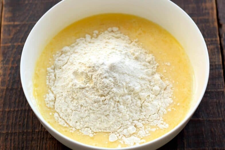 Борошно просійте через сито, змішайте з розпушувачем, додайте в рідкий склад.