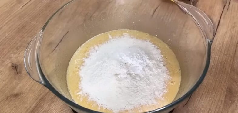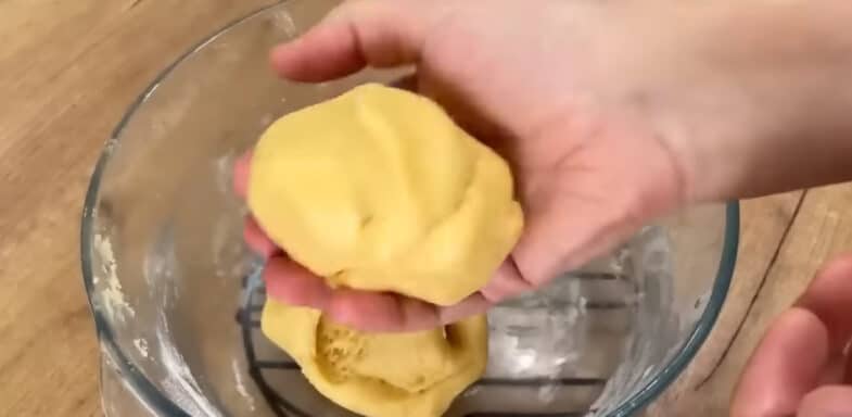 Просіюємо в яєчну суміш частинами борошно, з’єднане з розпушувачем. Додаємо в тісто натерту лимонну цедру, руками замішуємо еластичне тісто.