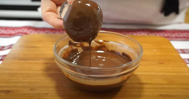 Розтоплюю шоколад, додаю олію, перемішую. Тепер у розтоплений шоколад занурюю шапочки. Викладаю на пергамент і залишаю до повного застигання шоколаду.