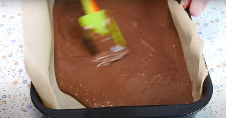 Форму прямокутну 20 на 35 см застеляю пергаментом, змащую олією і виливаю усе тісто. Випікаю у розігрітій духовці до 180 градусів приблизно 20-30 хвилин.