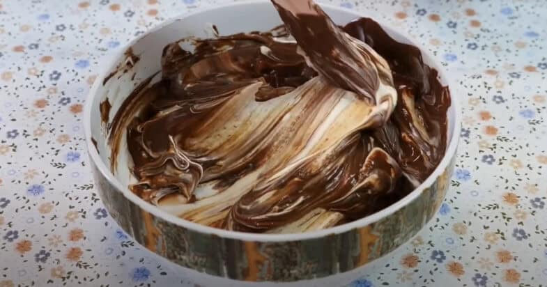 До сметани додаю розтоплений шоколад і перемішую до однорідності лопаткою.