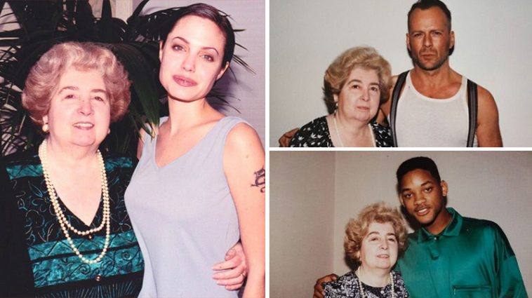 На фото можна побачити Тома Круза, Джонні Деппа, Брюса Вілліса, Стівена Спілберга, Анджеліну Джолі, Гаррісона Форда та багатьох інших. Усі вони ніжно обіймають літню жінку, наче давно її знають.