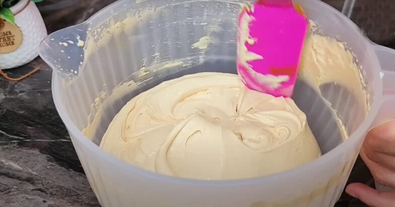 Збиваю у мисці міксером вершки, вершковий сир і варене згущене молоко до пишності.